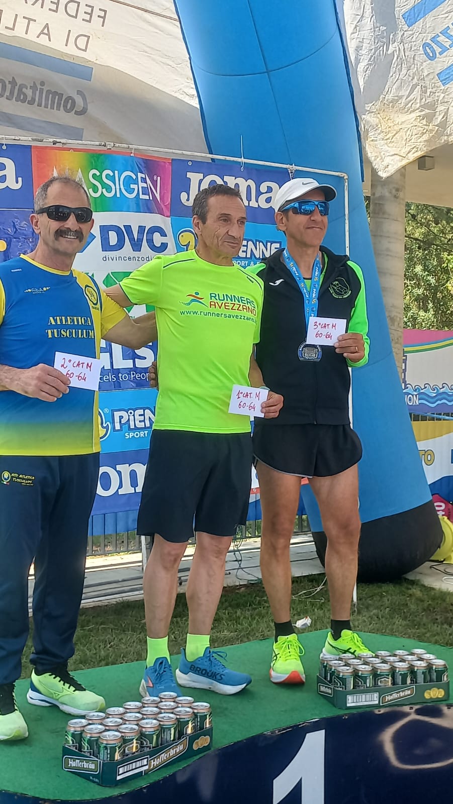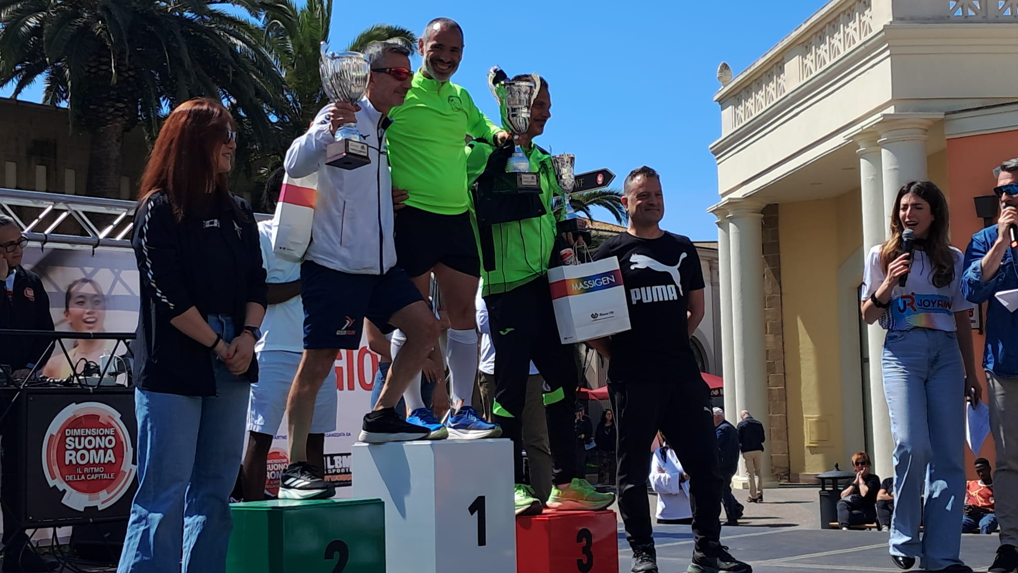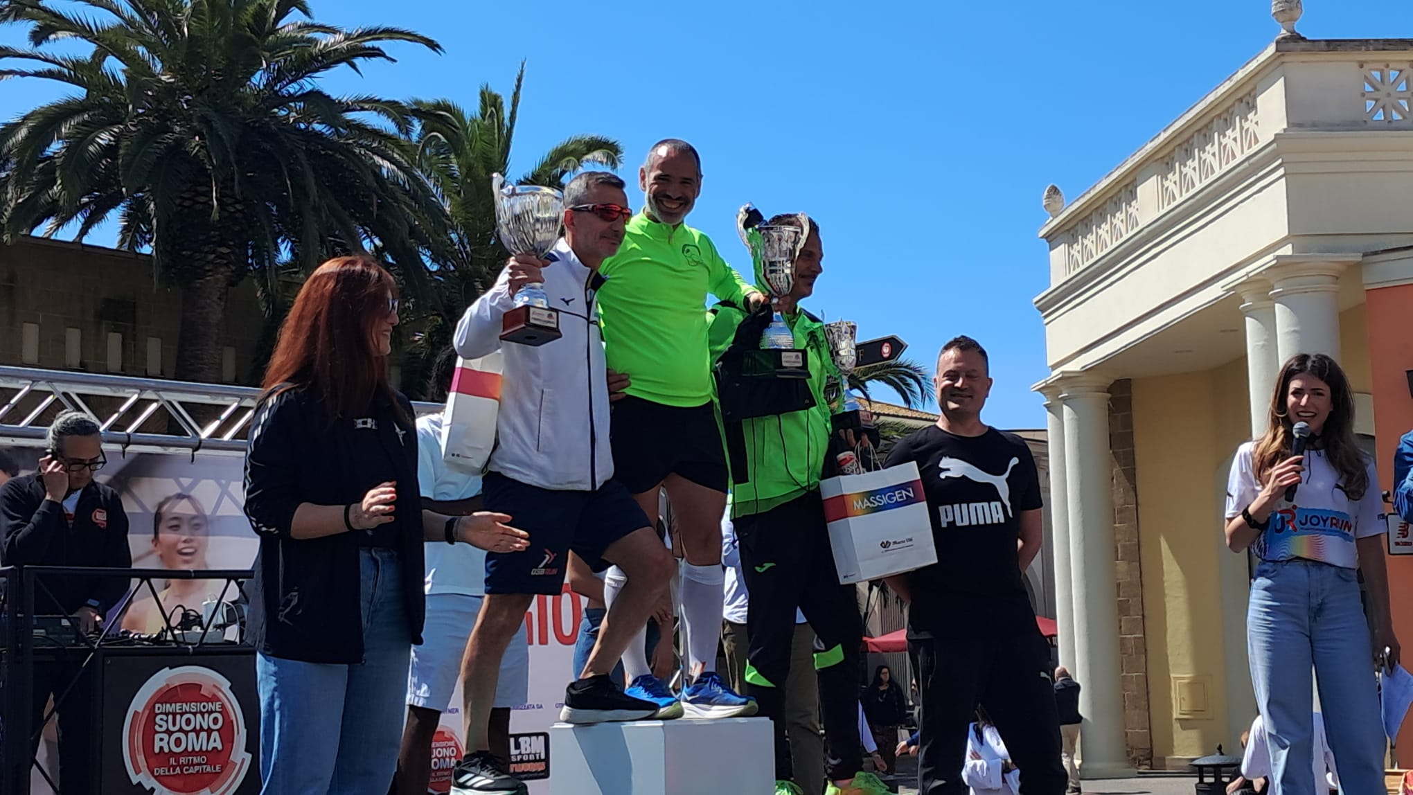 Alla Maratonina delle Periferie a Palmarola vista raccordo, tre bradipi presenti, Andrea Buccheri, Davide Troiani e Claudio Barigelli che prende la categoria arrivando 2° M40.