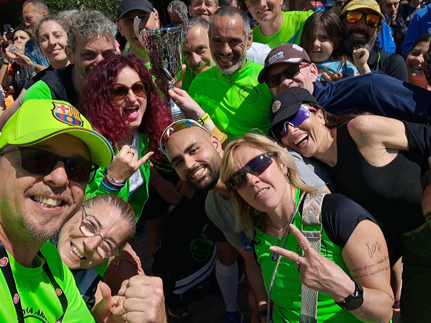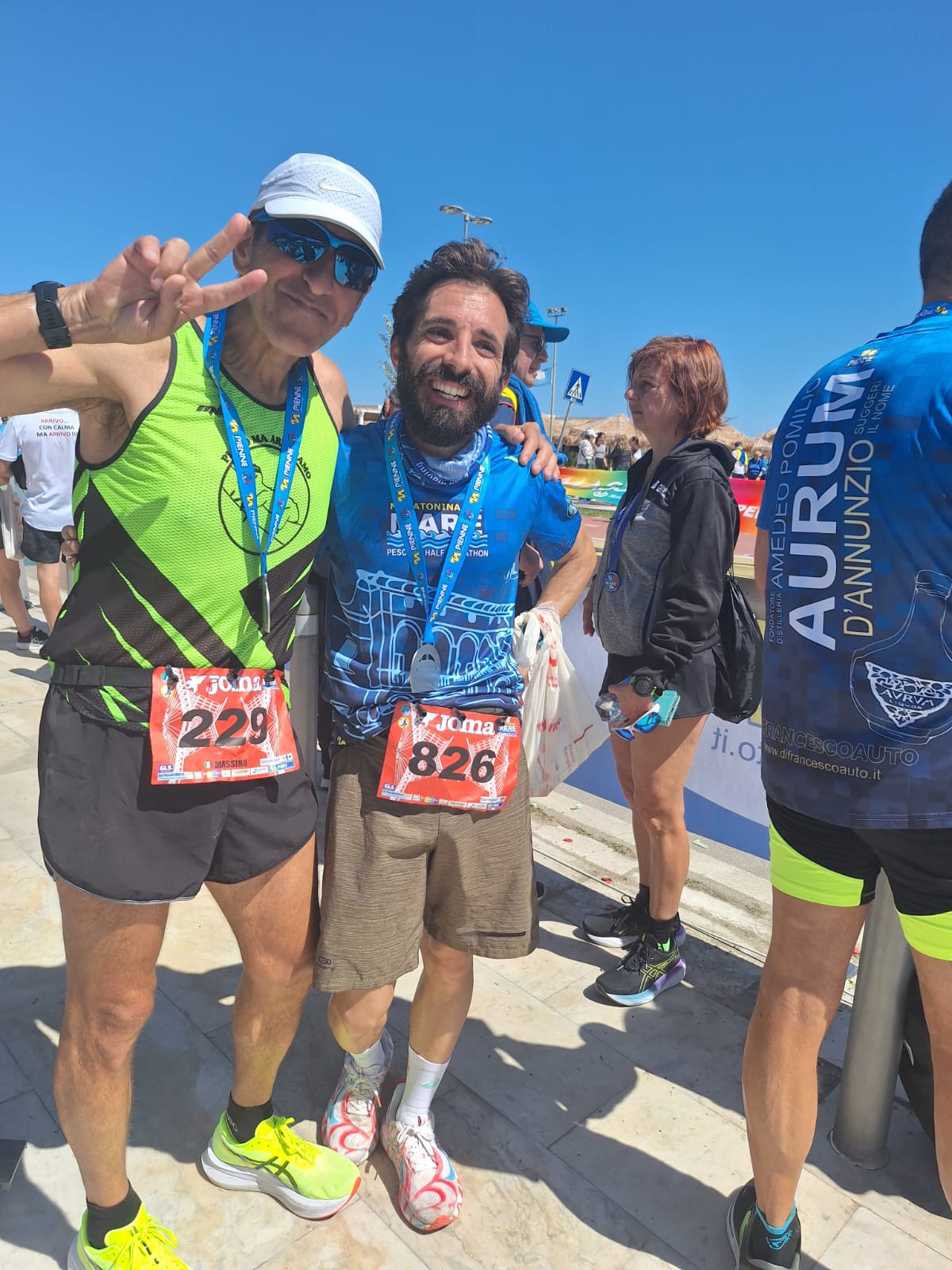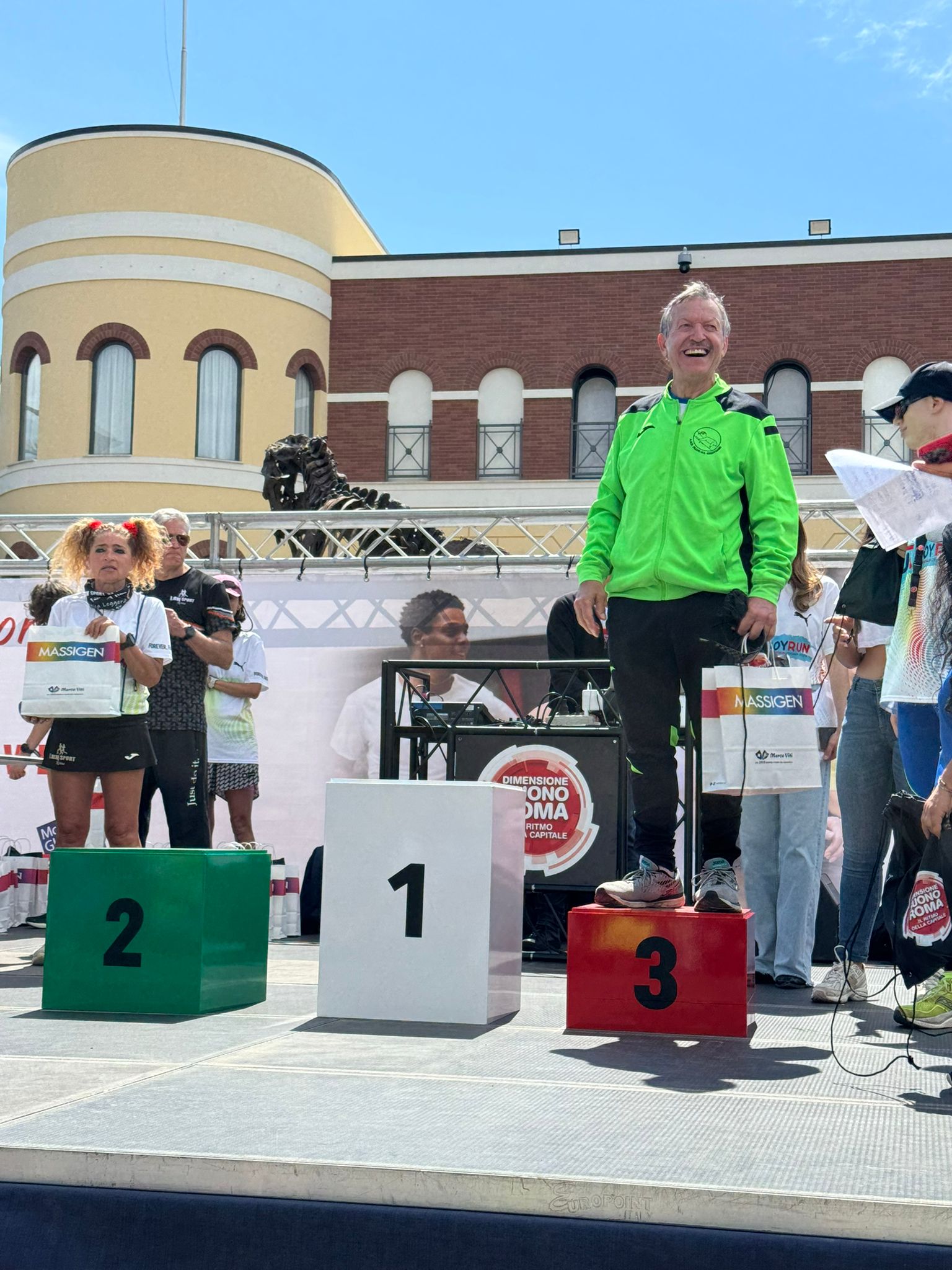 Alla Maratonina delle Periferie a Palmarola vista raccordo, tre bradipi presenti, Andrea Buccheri, Davide Troiani e Claudio Barigelli che prende la categoria arrivando 2° M40.