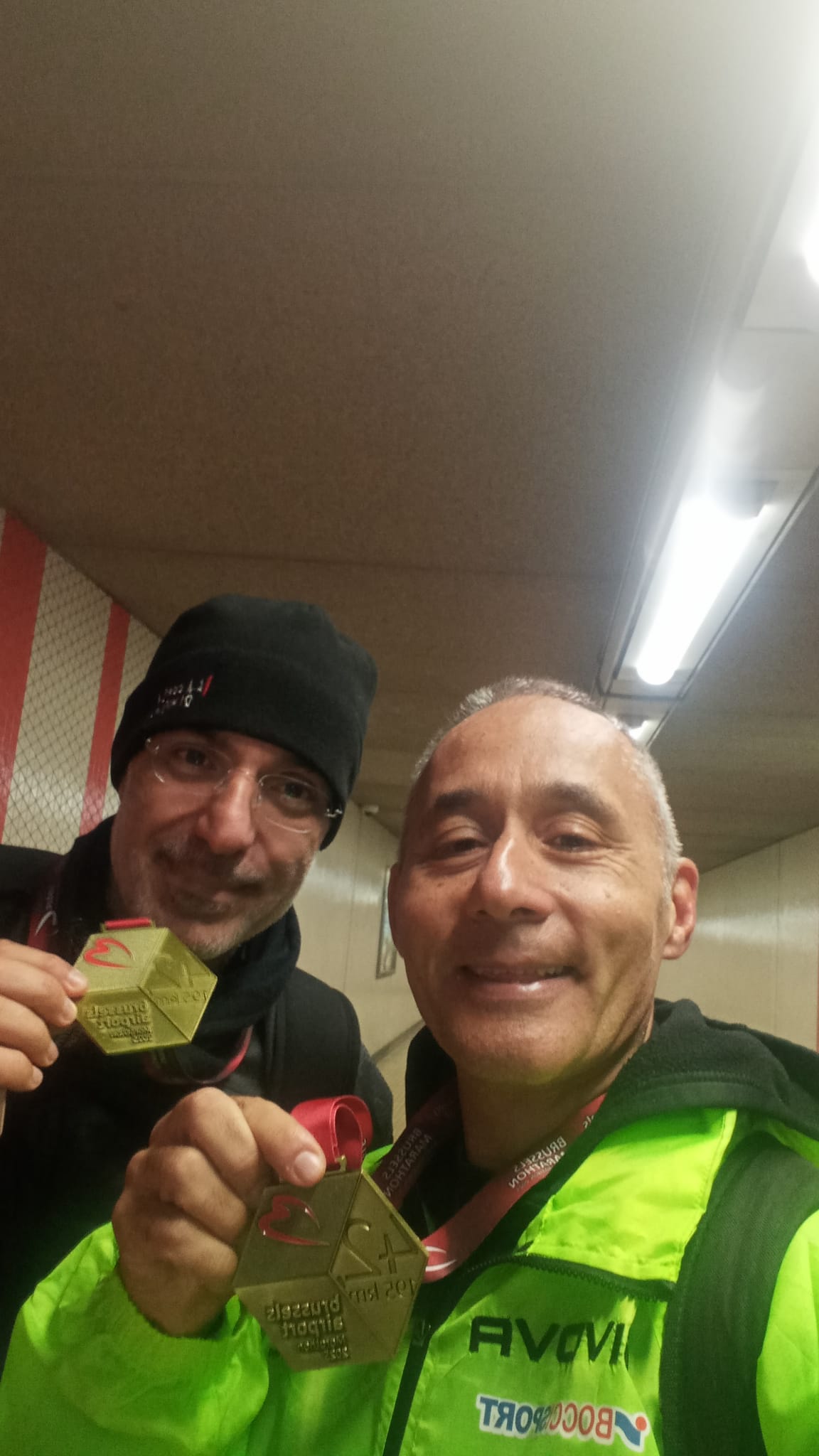 Ma, dalle 14,30 ora Italiana tutti inchiodati sul divano in attesa della Maratona di New York, iconica e ambita da tutti, il nostro Presidente è allo start e con lui tanti altri bradipi tra i 55mila partecipanti provenienti da 150 nazioni. La giornata è soleggiata e inizia a fare molto caldo, le onde partono distanziate, con la strana sensazione di partire quando ormai i top sono gia arrivati. Viene anche sgretolato il recond femminile della gara che grazie alla Obiri scende a 2h19,51. Avvincente l'arrivo maschile al foto finish consacra Kiptuto per soli 16millesimi sul debuttante Mutiso, col tempo dinale di 2,08,09. Ma tutto questo lo apprendiamo mentre seguiamo sull'app i nostri compagni di squadra. Chi va a New York per fare il tempo è un folle, in questa Maratona c'è molto di più, a partire dal tifo incredibile che inebetisce e non abbandona nemmeno l'ultimo partecipante quando ormai è buio. Peppe ci manda video, ci rende partecipi, sicuramente abbiamo corso con lui, lo sentiamo emozionato e divertito, si ferma si fa selfie, lui che è stato un assoluto, che ha vinto le maratone qui si diverte come un qualunque tapascione. Arriva al traguardo filmando il momento in cui riceve la medaglia, la "nostra" medaglia, che abbiamo sofferto, sorriso e ci siamo emozionati con lui. Unici.