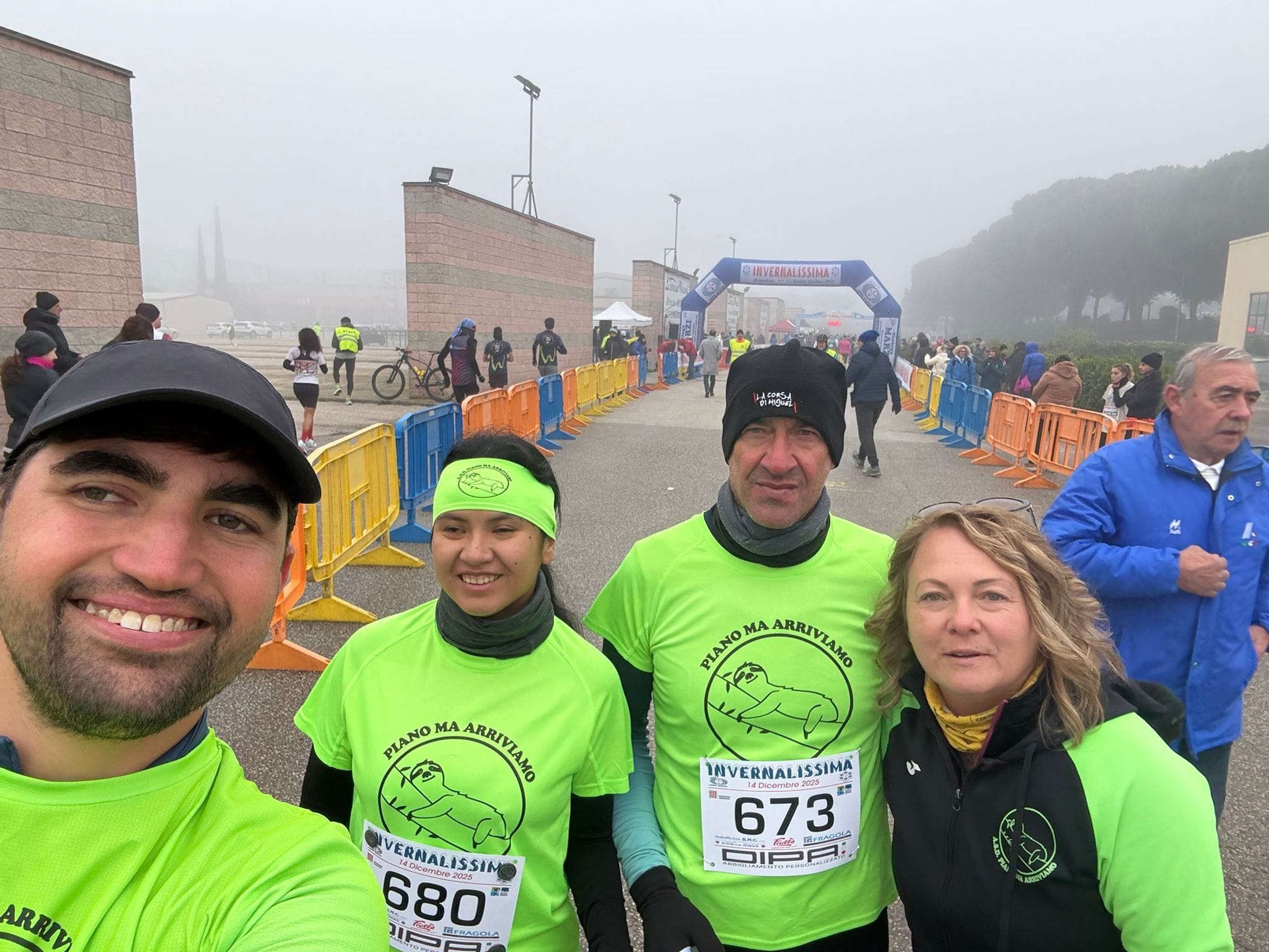 Fine settimana all'insegna dell'impegno verso la divulgazione e la conoscenza, sabato a Villa Gordiani nell'ambito dell'iniziativa SI MUOVE LA CITTÀ presenti per raccontare ancora una volta il nostro fare. In un parco seppur non molto affollato è stato un piacere far vivere la nostra esperienza ad un gruppo di giovanissimi atleti che ci hanno ascoltato e scoperto con tanta curiosità ed attenzione per poi provare con noi l'uso di quel cordino simbolo di unione ed integrazione nello sport per le persone con disabilità visiva. Ma poi arriva la domenica e l'entusiasmo sale con la partecipazione alle gare. Giuseppe Ruocco accompagnato dalla sua guida Christian Alimonti partecipa alla Urbs Mundi ed ancora una volta in un continuo crescendo di forza migliora il suo pb portandosi a casa un eccezionale 49,28 risultato strepitoso se teniamo conto che Giuseppe ha esordito in gara solo nel mese di luglio. Nella non competitiva gareggia sempre sui 10 km Sandro Monacelli alle prese con le sue prime gare chiude con un buon tempo di 54,21 accompagnato dalla guida Patrizio Sauzzi. Dai andiamo su Spostiamoci poi in una fredda Umbria Yeraldine Patino Rivera corre la sua seconda mezza del mese sempre accompagnata dalla guida Vincenzo Addelio porta a casa un tempo di due ore e 10 ben nove minuti in meno rispetto a alla mezza di Cagliari di una settimana fa' grandissimo risultato. Come sempre il gruppo partecipa seppur un maniera virtuale inviando messaggi di incoraggiamento di complimenti sempre in fervida attesa del risultato. Ma lasciateci dire che i risultati di oggi sono seppur auspicati, inaspettati ma sono il segno evidente che in un solo anno di attività siamo andati oltre al nostro pensiero segno che lo sport vince su tutto e che il gruppo fispes di piano ma arriviamo è una splendida realtà e per questo ci possiamo permettere un complimenti a noi per la passione e la consapevolezza che ci spinge ogni giorno un po' più avanti. Ci avviciniamo ad un 2026 pieno di sorprese.
