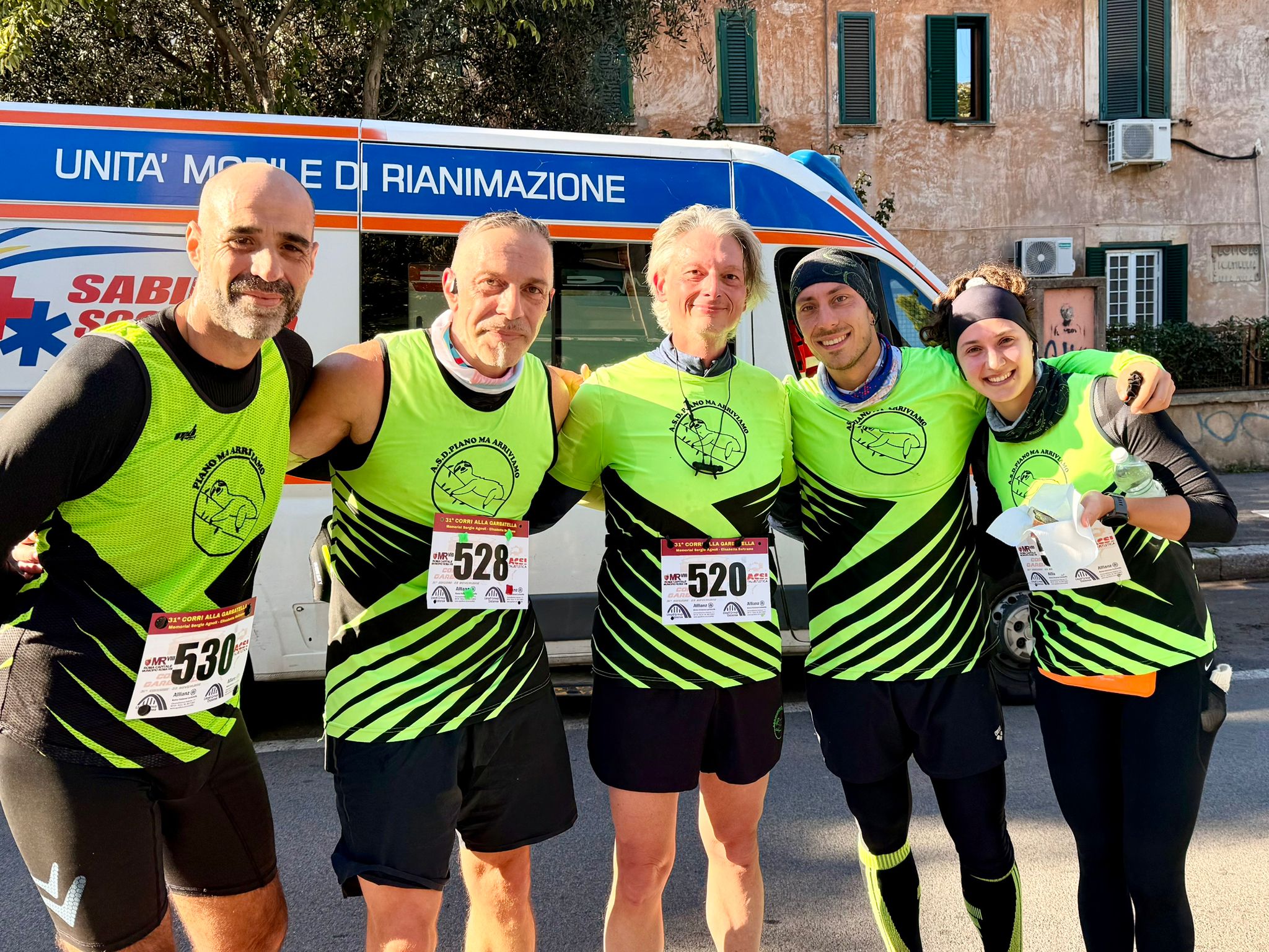Clima di festa alla Corsa di Chiara, tanti volontari, tante famiglie, tanti bambini, e ovviamente anche tanti Bradipi. Alla partenza si fanno i conti con il primo freddo stagionale, e sono pochi quelli che azzardano un abbigliamento leggero. Dopo le foto di rito e il riscaldamento, si parte. Precedenza per i corridori con la Joelette e gli accompagnatori dei nostri atleti Fispes, anche oggi numerosi, poi a seguire tutti gli altri. Alcune bradipe decidono di dare un segnale colorato e gioioso correndo con glitter e gonnellino. Il percorso, molto allenante per via delle numerose salite e discese, si compone di due giri da 5 km, quasi interamente sulla ciclabile che attraversa anche un bel parco nel quartiere di Torrino Mezzocamino. Oltre agli atleti sono presenti anche chi ha optato per la passeggiata non competitiva con i propri figli. All'arrivo ci attende un mega rinfresco sia dolce che salato offerto dall'organizzazione. Non può mancare anche un pezzo del nostro terzo tempo, grazie soprattutto ai festeggiati Ivan ed Elisabetta. Per le categorie, Marco Farneti 3° M45, Fortunato Rizzo 3° M60, Carla Della Bella 1a F65 e Anna Siconolfi 3a stessa categoria, Rachele Pasquariello 3aF45.