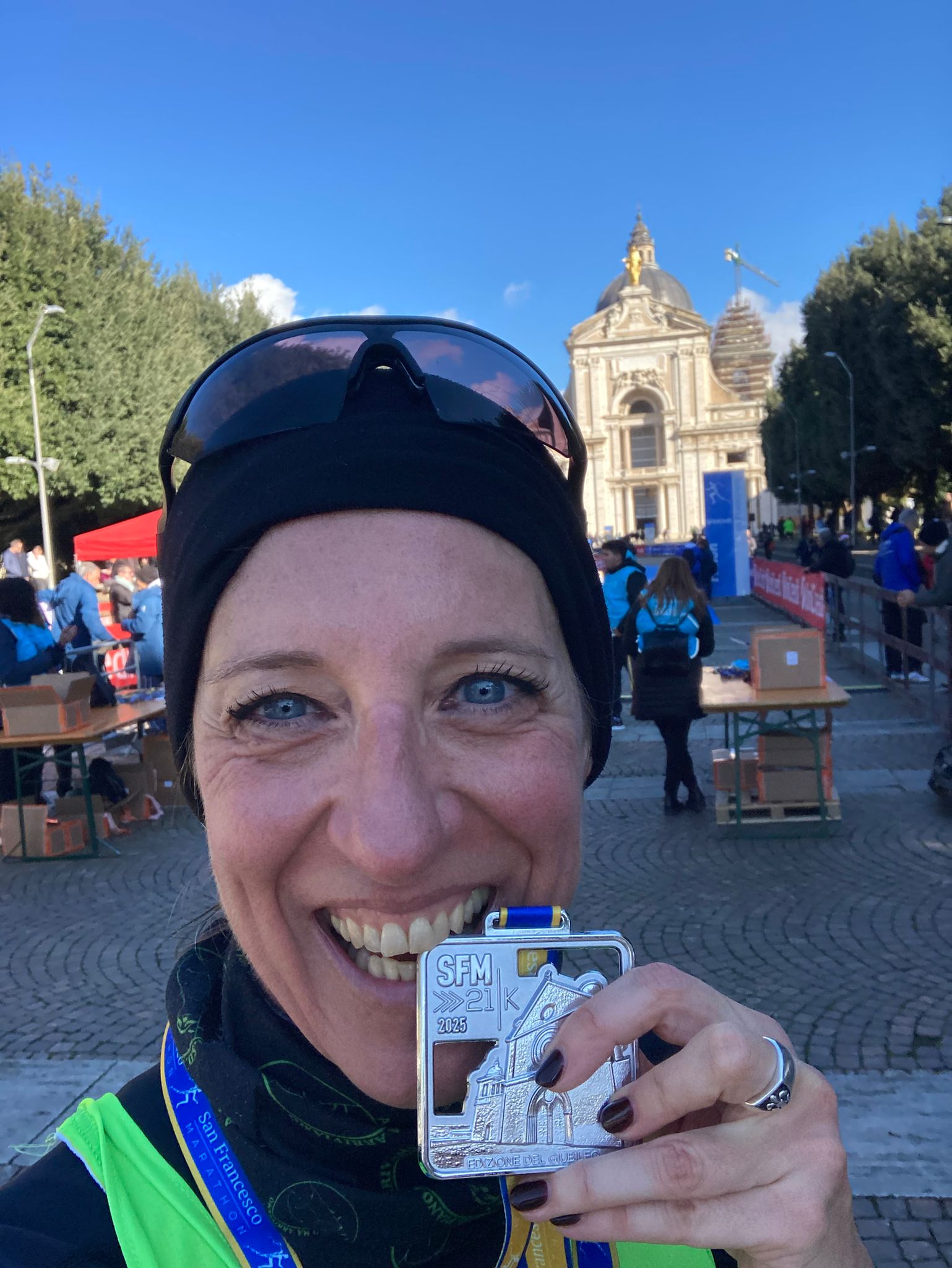 Molti dei nostri ragazzi li troviamo fuori regione per le importanti prime maratone e mezze di questo autunno inoltrato. Il freddo non ha spaventato i Maratoneti di Assisi per la San Francesco Marathon. La gara si completa di tutte le distanze (42, 21 e 10km). I bradipi si trovato di fronte una giornata fredda ma soleggiata e luminosa, per la regina Andrea Bucra si presenta come Pacer delle 3h20, cosi come Paulo Cossio La Rosa che come spesso accade finisce di suonare a notte fonda, dorme in macchina e si presenta allo start, in questo caso delle 4h45. Complimenti anche a Fabrizio Del Papa per la sua determinazione. Donatella Torre nonostante non in perfetta forma riesce a chiudere sotto le 4 ore. Per la 21km Emiliano Serru faPB (1h47), Debora De Cesare, Fabio FLorio, Cecilia Somigli e Emiliano Scarpigliati. Il percorso, modificato rispetto alla prima edizione, è impegnativo, ma il passaggio sotto Assisi, le cime innevate, l'ingresso a Spello, sfidante e suggestivo, e l'arrivo alla Basilica di Santa Maria degli Angeli fanno battere fortissimo il cuore.