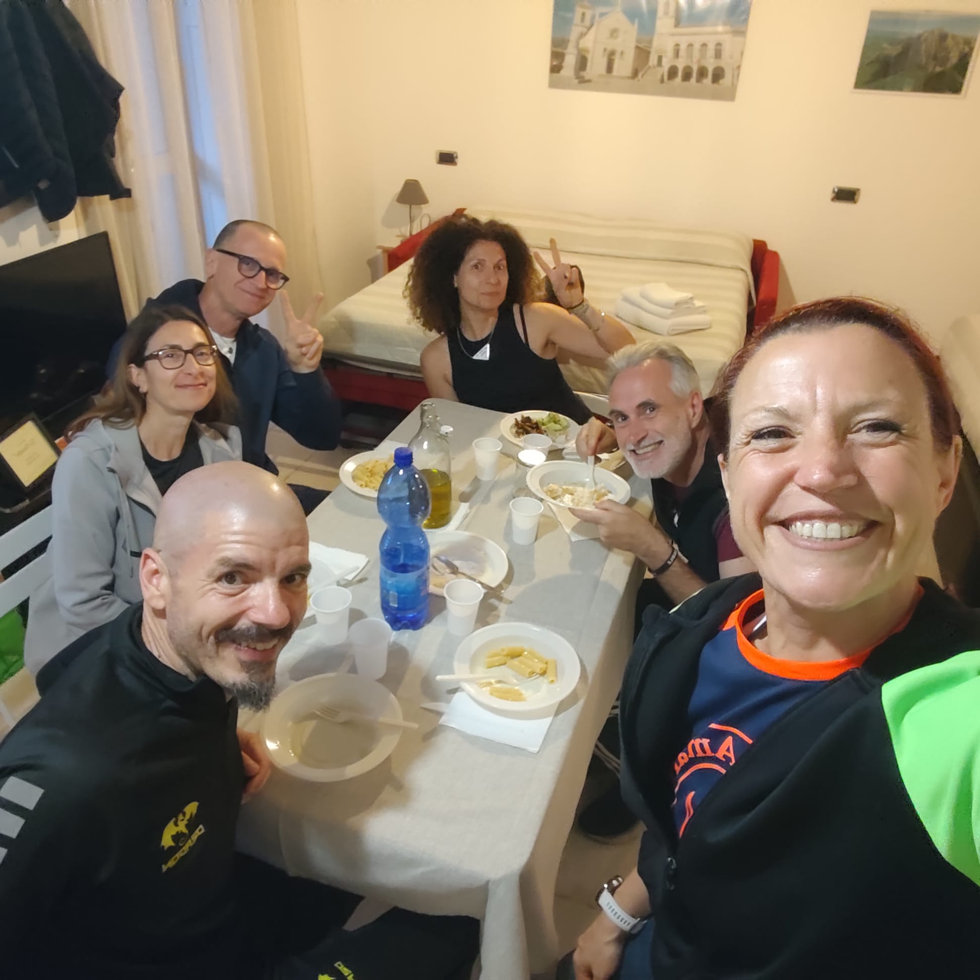 Una nota di colore: la famiglia Bradipa si aggrega sempre! La sera prima della gara, tutti e sette si sono ritrovati a cena insieme a casa Bianchini/Bonifacino, gustando un bel piatto di pasta e condividendo l’entusiasmo per questa avventura.